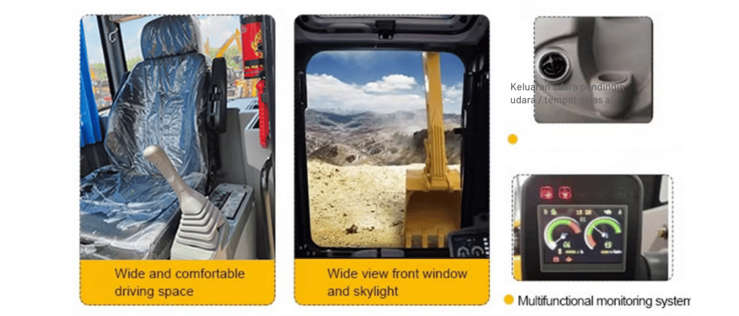 Gaya kabin baru, suara lebih rendah, lingkungan kerja yang lebih nyaman, secara efektif mengurangi kelelahan operator dari mengemudi, dengan visibilitas yang baik di depan dan belakang, mewujudkan operasi yang aman dan dapat diandalkan. Pendingin udara berkekuatan tinggi, kursi yang dapat disesuaikan, lebih nyaman untuk bekerja.